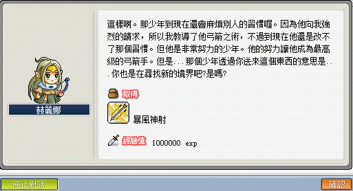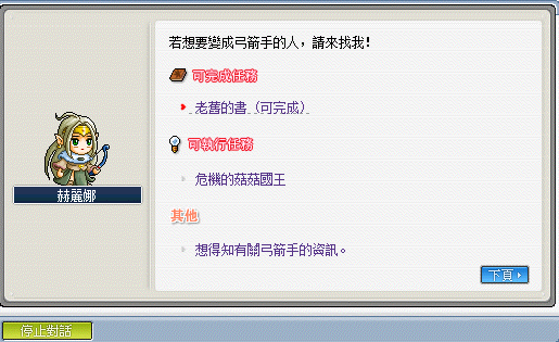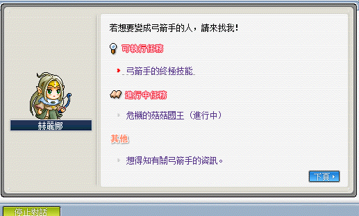 6.和弓箭手一轉教官-赫麗娜接取任務<弓箭手的終極技能>