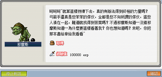9.在同一張地圖最下層找NPC – 邪摩斯回報任務<邪摩斯的忠告>