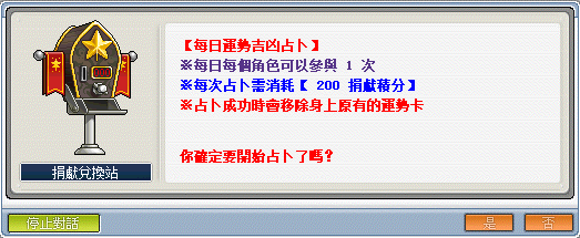 《運勢占卜》─每日可以消耗捐獻積分進行運勢占卜,占卜後依運勢有機會獲得各式各樣的額外加成效果