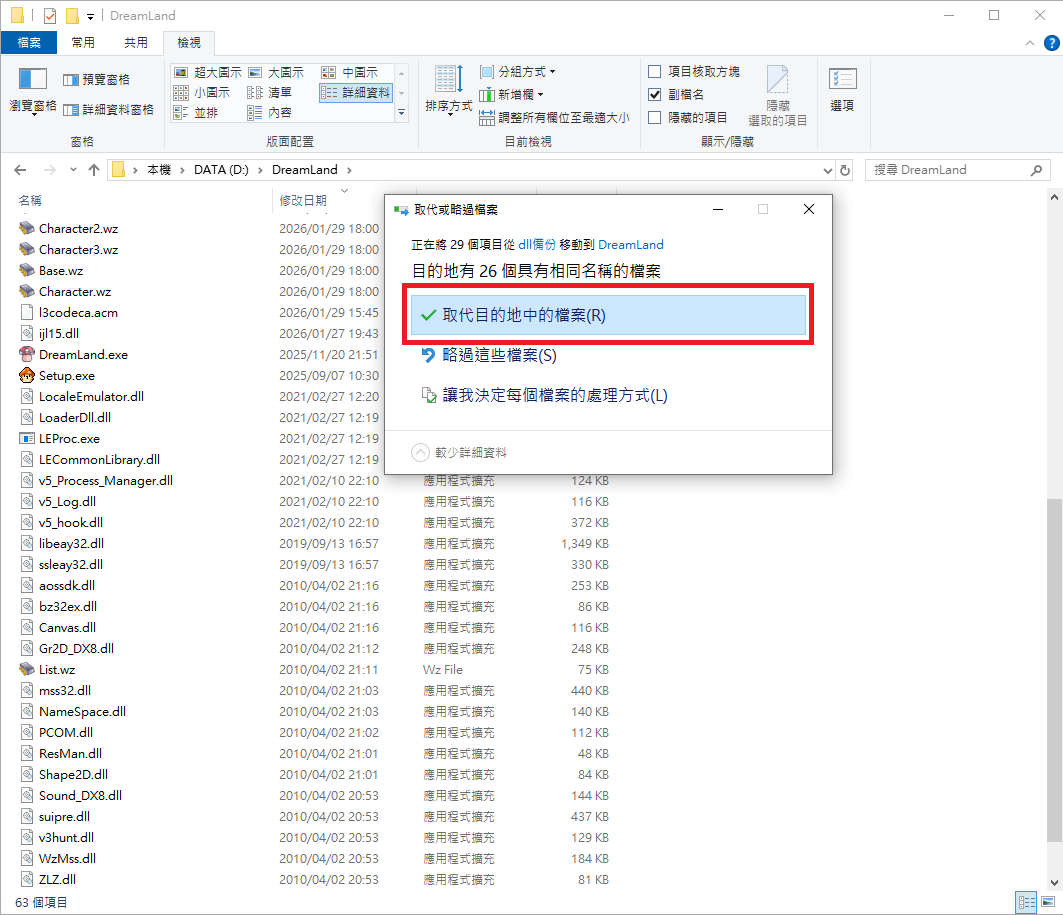 這種情況通常是遊戲資料夾內有檔案遺失或不完全,依照下方教學方法重新解壓縮主程式即可解決這個問題。