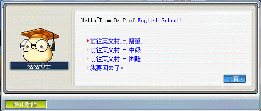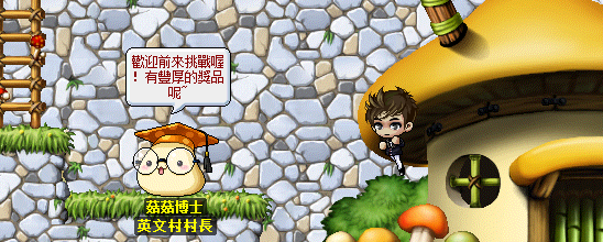 進入英文村後,即可看到入場NPC 菇菇博士
