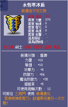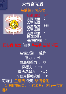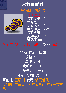 ※職業盾牌─劍士、法師、盜賊職業專屬的盾牌,後期可透過裝備進化繼續升級成更強大的盾牌