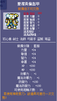 ※通用套裝─全職業通用的過渡套裝,可提供練多個職業或分身角色的玩家選擇使用