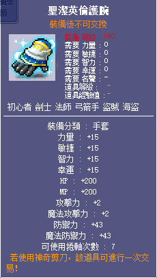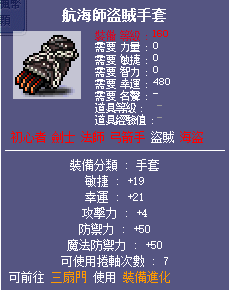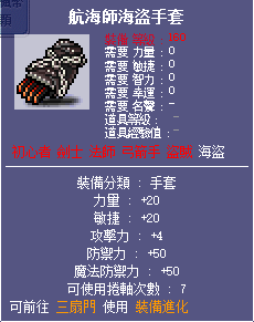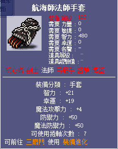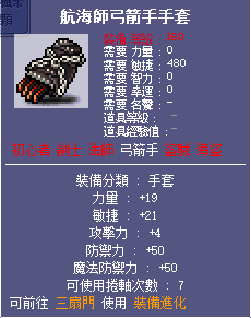 ※職業手套─各職業專屬的手套,後期可透過裝備進化繼續升級成更強大的裝備
