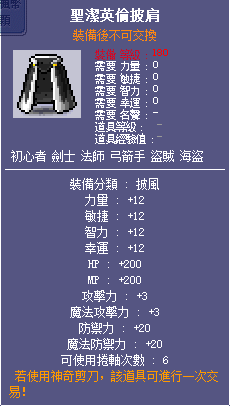 ※職業披風─各職業專屬的披風,後期可透過裝備進化繼續升級成更強大的裝備