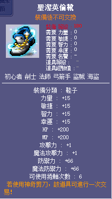 ※職業鞋子─各職業專屬的鞋子,後期可透過裝備進化繼續升級成更強大的裝備
