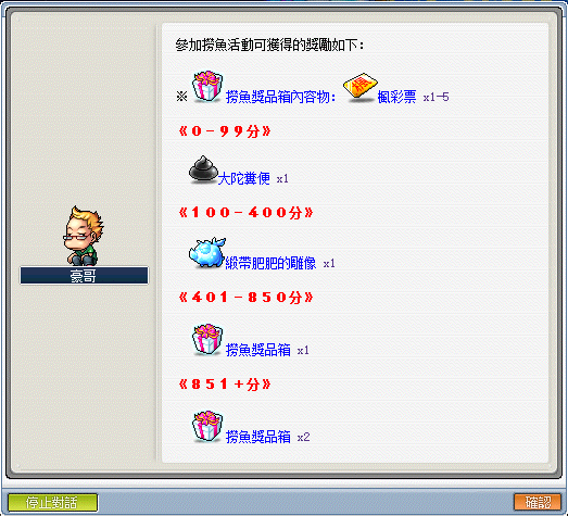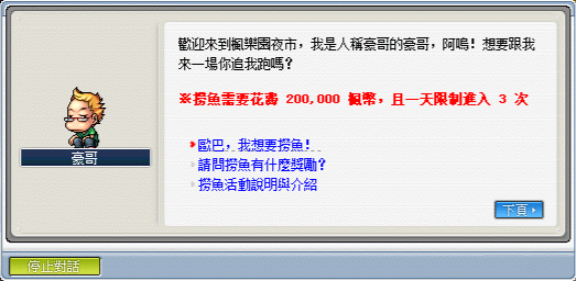 2.入場前須準備 200,000 楓幣 才可以進行撈魚,一天一個帳號可以進入 3 次