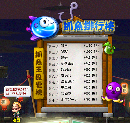 1.前往福爾摩沙─不夜城找 NPC 豪哥 參加不夜城撈魚活動