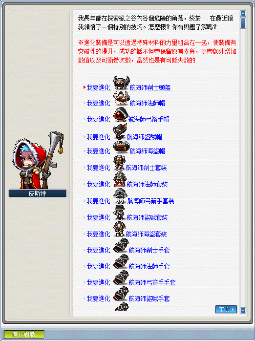 《開始進化》─當你蒐集完所有材料即可開始進行裝備進化,以下為幾種進化的使用方式