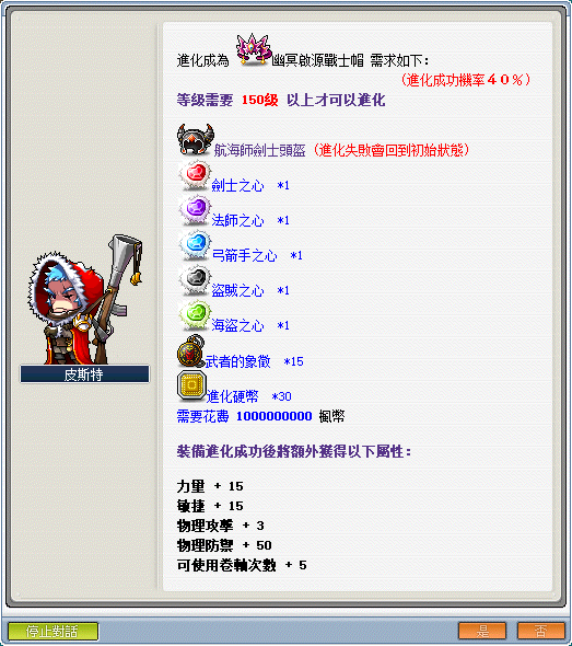 《進化成功》─將裝備提升到一個前所未有的高度,不只各素質獲得全面提升,且還可以獲得額外的衝卷次數