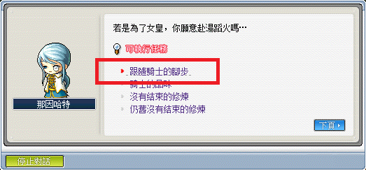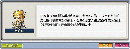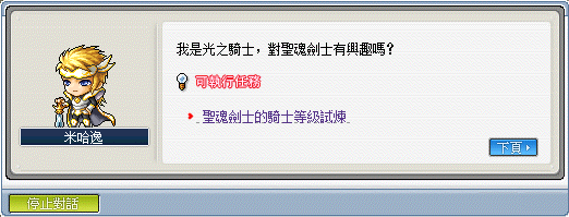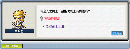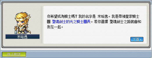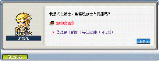 - 接取轉職任務(一):前往耶雷弗找到那因哈特對話接取轉職任務─《跟隨騎士的腳步》