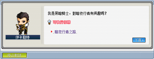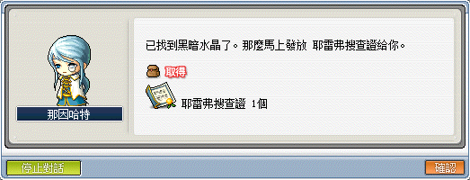 - 接取轉職任務(四):取來一個黑暗水晶後找到那因哈特回報任務