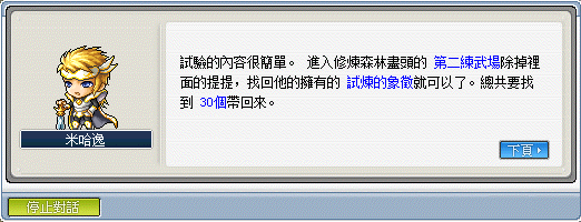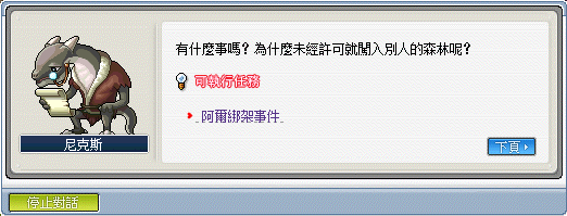 - 接取轉職任務(五):前往偏僻森林找尼克斯接取任務─《阿爾綁架事件》