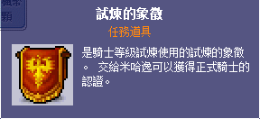 - 完成轉職考驗:將遺失的寶物交給各職業騎士團長完成任務
