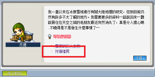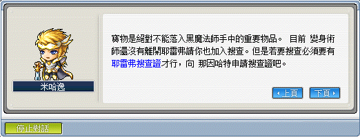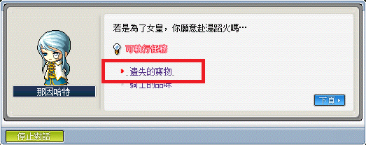 - 接取轉職任務(一):前往耶雷弗找到那因哈特對話接取轉職任務─《遺失的寶物》