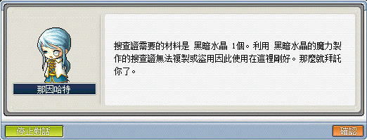 - 接取轉職任務(三):找到那因哈特對話接取轉職任務─《耶雷弗搜查證》