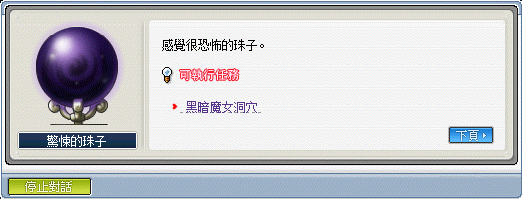- 接取轉職任務(六):前往黑暗魔女的洞穴找驚悚的珠子接取任務─《黑暗魔女洞穴》