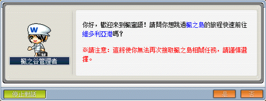 - 衝等首選:使用快速跳過的方式離開楓之島,會立即前往維多利亞島並直接升級至 8 等。