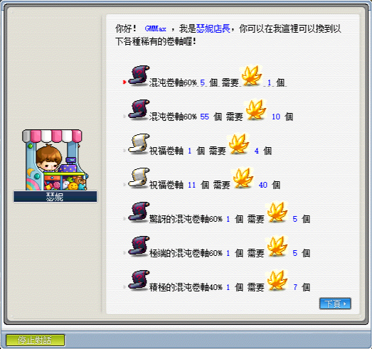 《卷軸兌換》─可以兌換祝福卷軸、各式混沌卷軸…等稀有卷軸