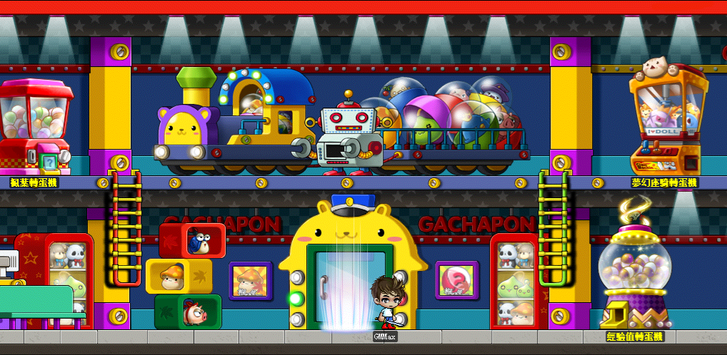玩過楓之谷的玩家都非常熟悉的轉蛋屋,裡面有各式各樣獎勵的轉蛋機。