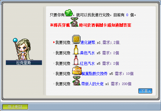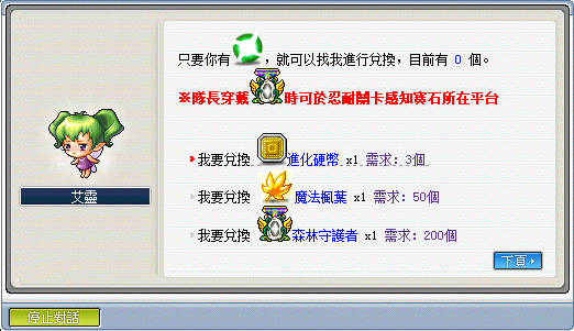 1.每次通關可獲得綠水靈的碎片,可兌換上述所有獎勵
