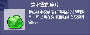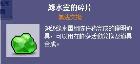 2.綠水靈的碎片也常使用在各系統任務、裝備進化上