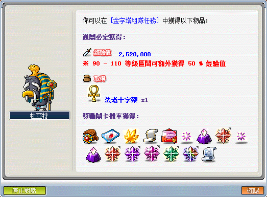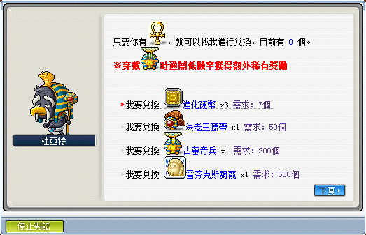 1.每次通關可獲得法老十字架,可兌換上述所有獎勵