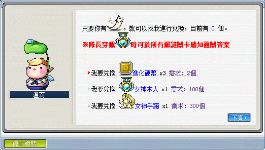 1.每次通關可獲得女神的羽翼,可兌換上述所有獎勵