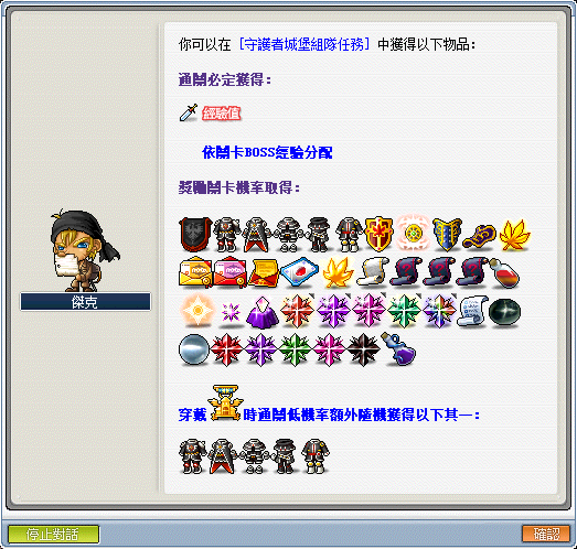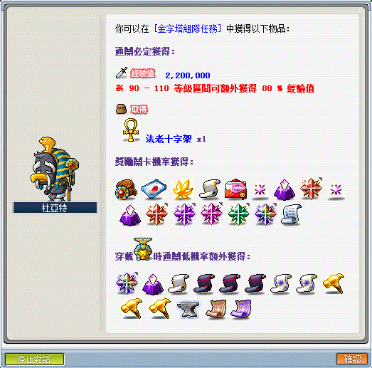 ※進場條件:角色必須達到 160 等級以上,人數限制 5 ~ 6 人,且須五大職業各一位(狂狼歸類為劍士),推薦練功等級 160+