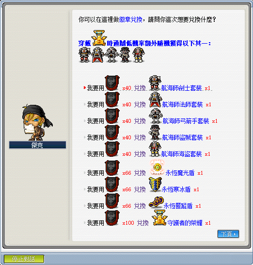 1.每次通關可獲得海賊象徵,可兌換上述所有獎勵