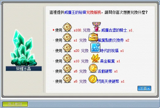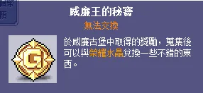 2.威廉王的秘寶可前往旁邊的榮耀水晶進行兌換,也常使用在各系統任務上