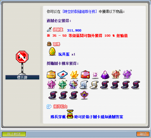 ※進場條件:角色必須達到 35 等級以上,人數限制 4 ~ 6 人,推薦練功等級 35 ~ 50