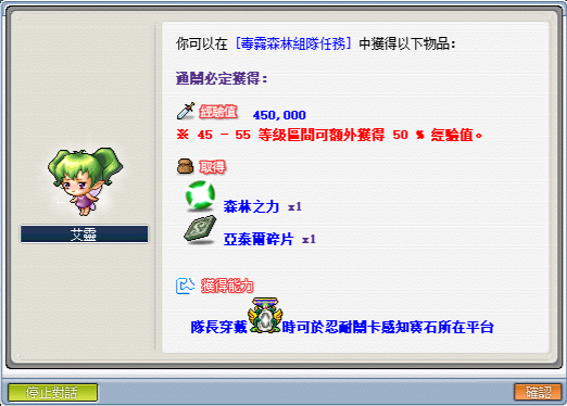 1.每次通關可獲得森林之力與亞泰爾碎片,可兌換上述所有獎勵