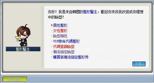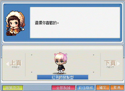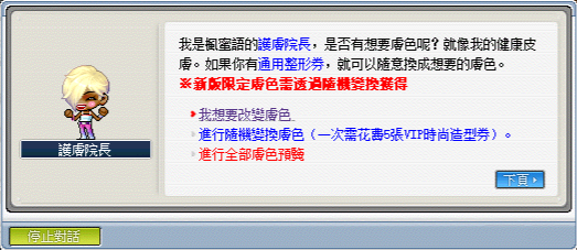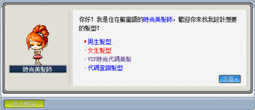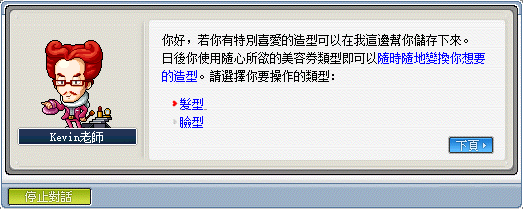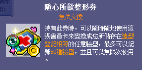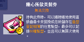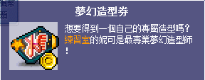 在楓蜜語裡,各村莊的造型NPC都已統一,並且以全新的機制來改變造型,以下是楓蜜語裡所使用的造型券