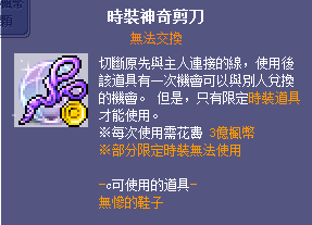 在楓蜜語裡,除特定的活動限定時裝外,幾乎所有的時裝都是可以交易的,這時就需要使用時裝神奇剪刀