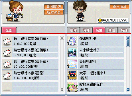 雖然支票兌換時收取較高手續費,但相比較起交易可以更加方便,如果想省下交易手續費,也可以善用精靈商人擺攤來交易,是楓蜜語大額交易時最低手續費的方式,但須花費擺攤時間,請自行斟酌。