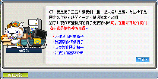 椅子製作位於結婚小鎮右上角,找到 NPC 姆湯熊 即可進行椅子製作