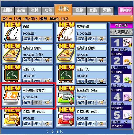 玩家可於購物商場花費GASH點數來購買楓葉點數,依照個人需求購買需要的數量即可。