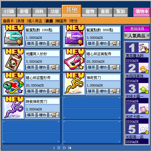 1.透過購物商場使用遊戲點數購買